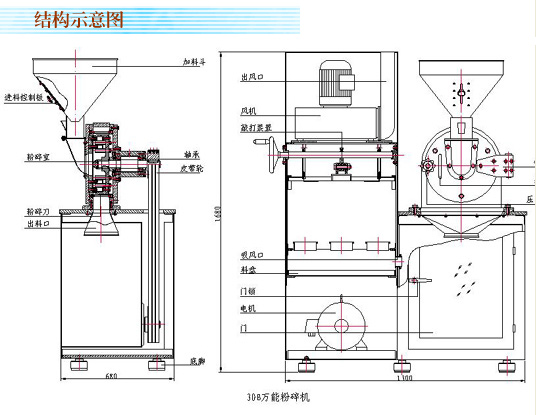 | 30BIV.V.VI | 100-300kg/h | 3800r/min | 10mm | 60-120目 | 5.5KW | 1.5KW |